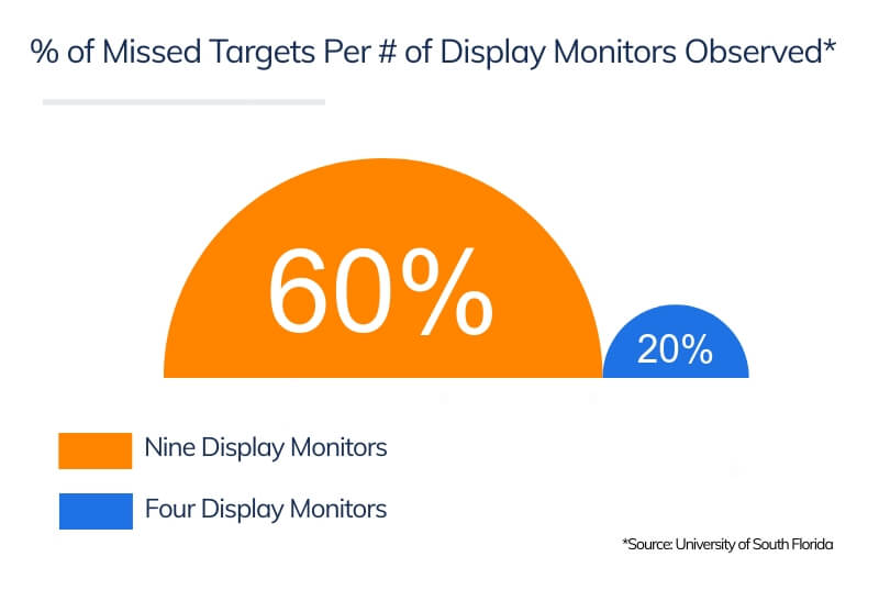 A study by the University of South Florida found that observers missed three times as many targets when required to monitor nine display monitors instead of four.